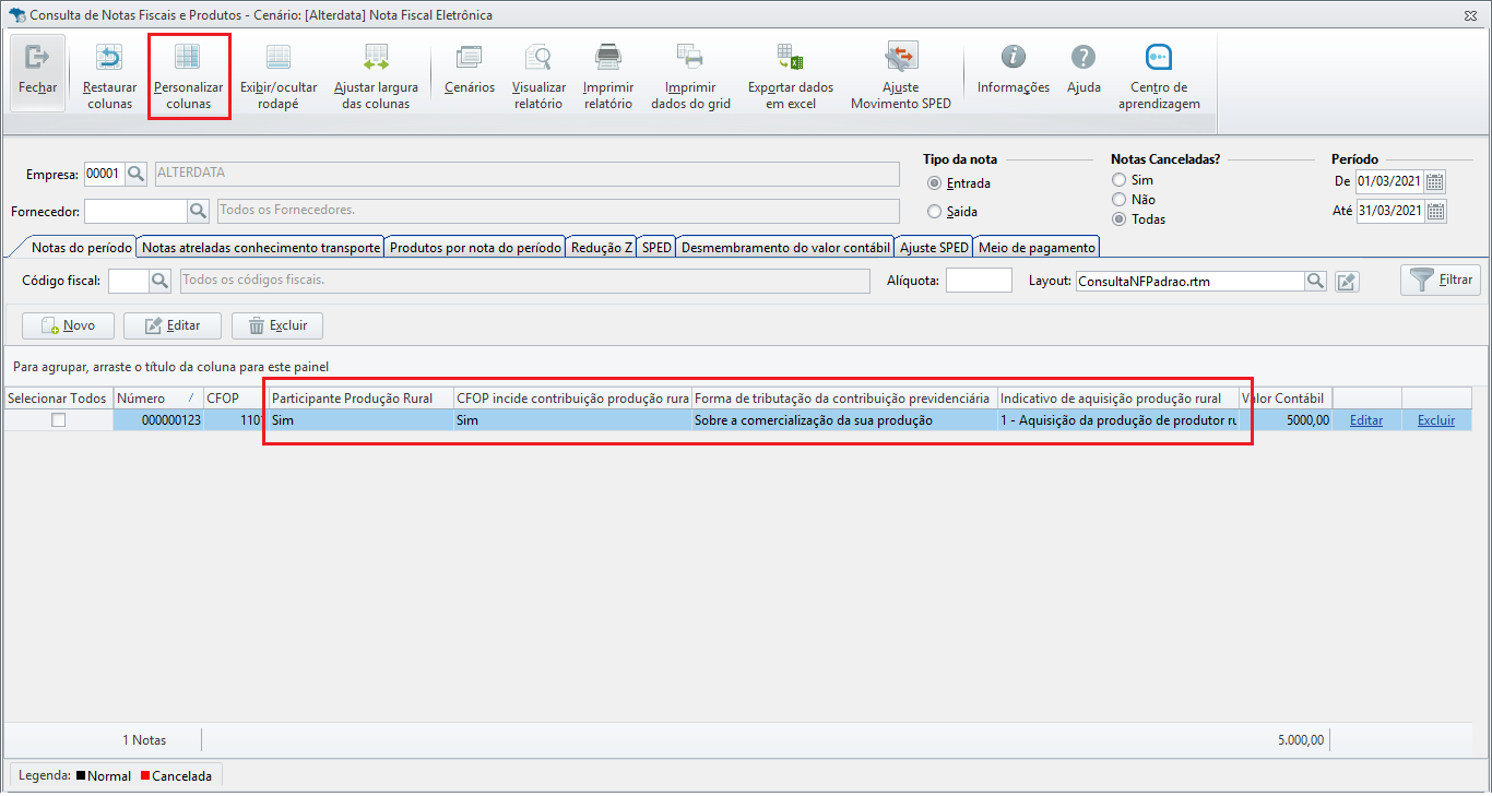 - Indicativo de Aquisição Produção Rural- Incide contribuição produção rural (Apenas na aba produtos por nota)
