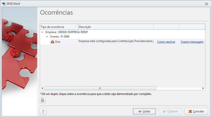 Clique sobre o erro para visualizar a mensagem completa.