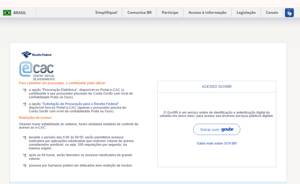 Este erro ocorre quando o portal do ECAC esta com algum tipo de instabilidade.