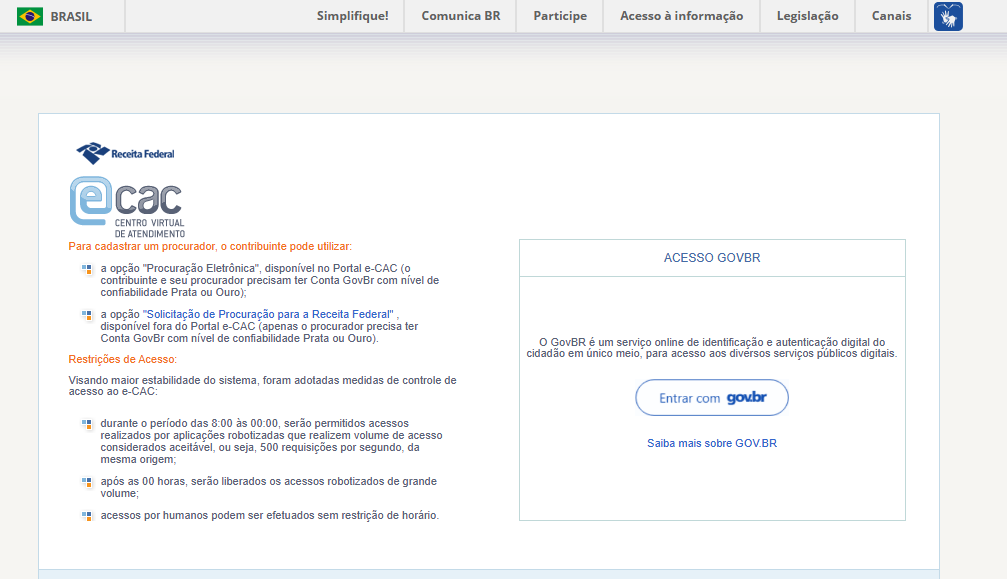 - Vá no site https://cav.receita.fazenda.gov.br/autenticacao/login e faça o login;
