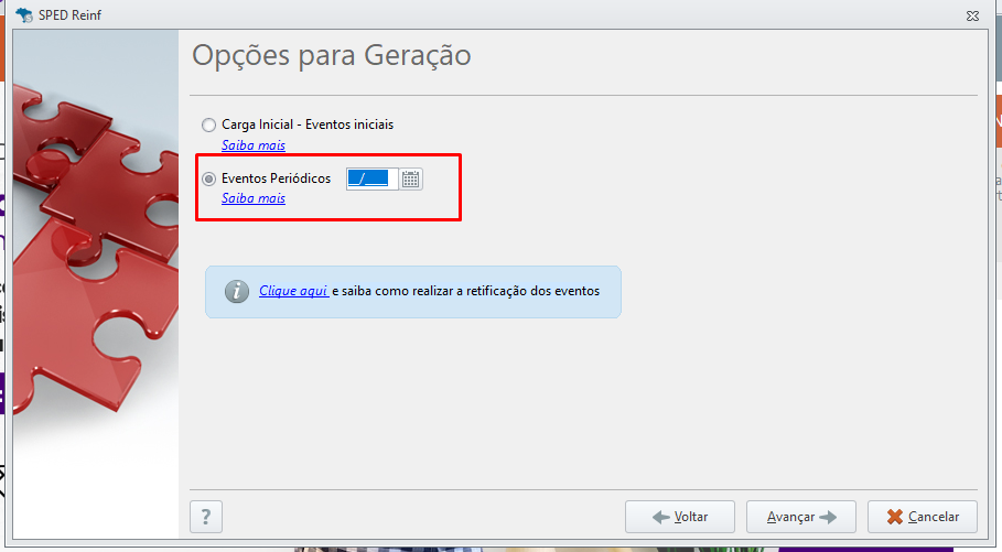 - Marque a opção Eventos Periódicos e informe o período. Após, clique em Avançar;