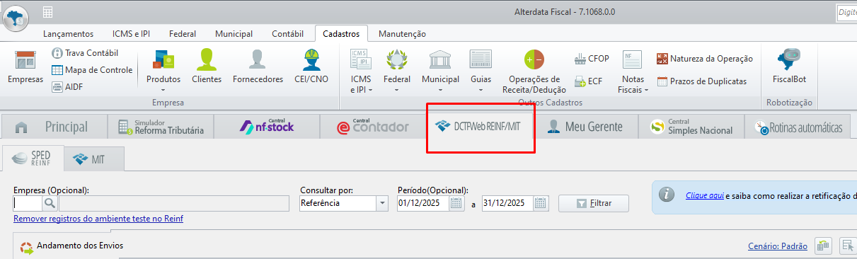 - Acesse a Central DCTFWeb REINF/MIT;