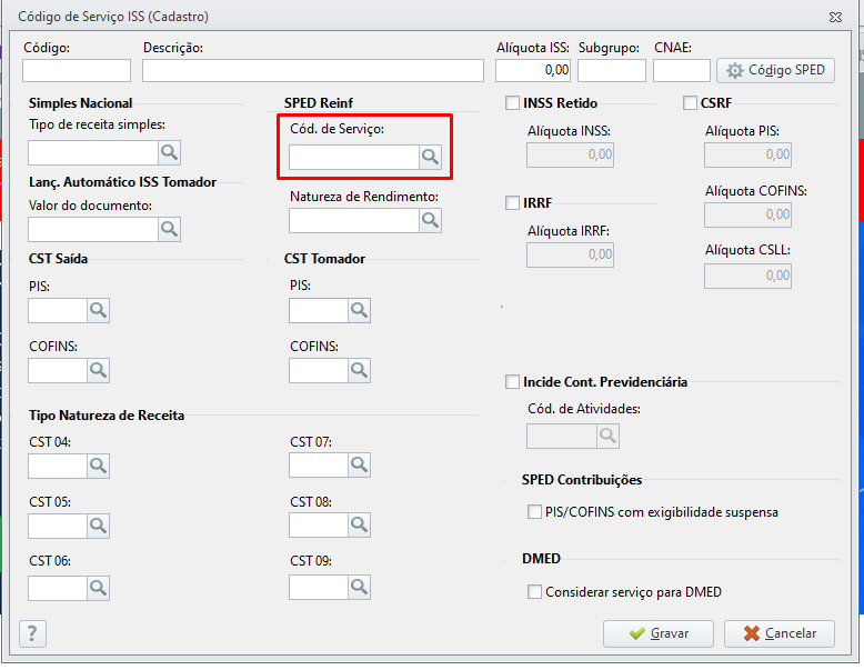 - Informe o código de serviço REINF;