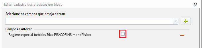 3. Clique na opção Editar em bloco e informe o campo Regime especial bebidas frias PIS/COFINS monofásico e clique no "+" para adicionar;