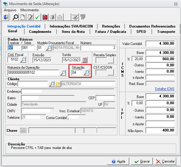 - Abra a nota com a situação 04 (denegada) e/ou 05 (inutilizadas);