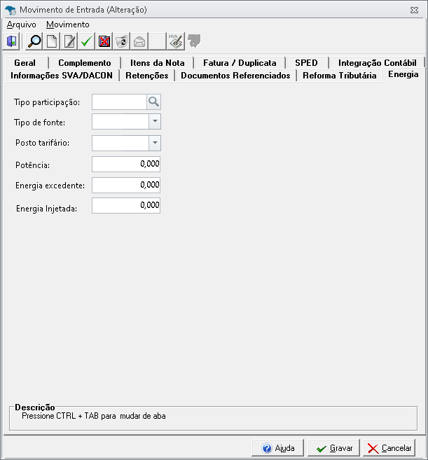 Criamos a nova aba "Energia" na capa e nos itens da nota para o Modelo 66, permitindo um preenchimento rápido e preciso: