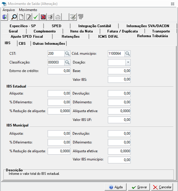 Organização Impecável para o IBS/CBS: Para uma melhor visualização e organização, implementamos nas abas de Reforma Tributária os campos de Indicador de Doação e Estorno de Crédito de IBS/CBS. Com eles, você registra de forma clara e ágil essas informações cruciais, evitando confusão e erros.