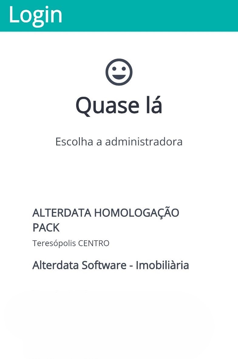 Serão listadas todas as Administradoras que contenham as letras digitadas. Localize sua administradora e clique sobre ela.