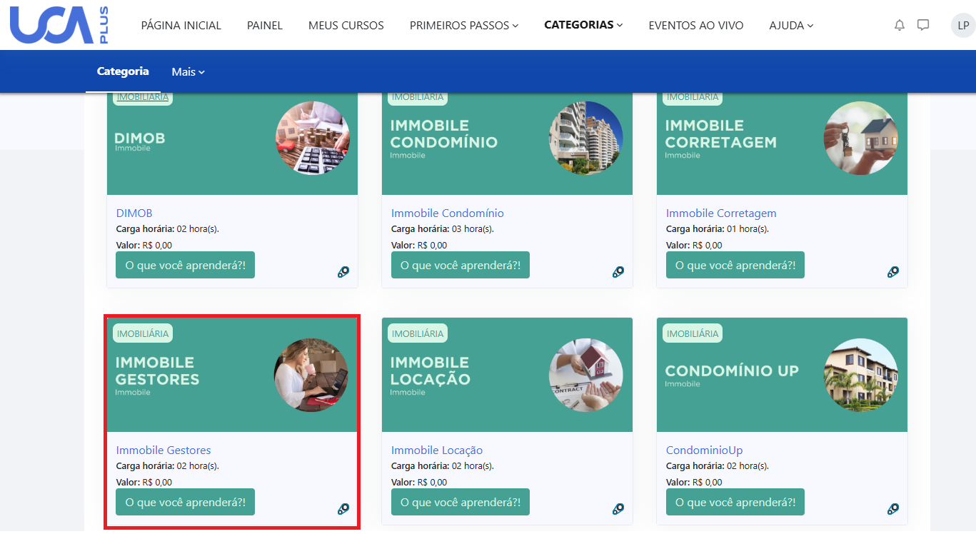 - Depois, clique na opção IMMOBILE CRM para iniciar o curso.