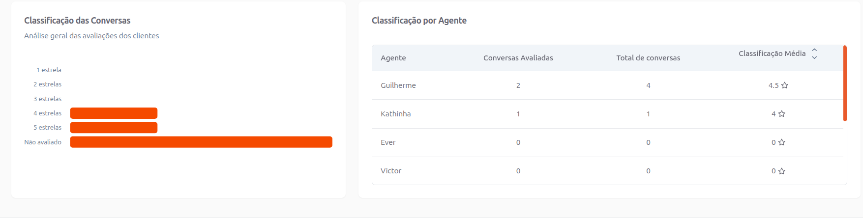 Você poderá acompanhar individualmente os indicadores de produtividade e avaliação separada por agente.
