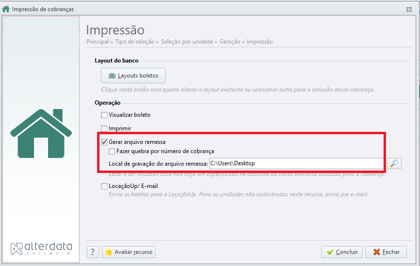 - Clique na opção Imprimir/Gerar para efetuar a impressão da cobrança.