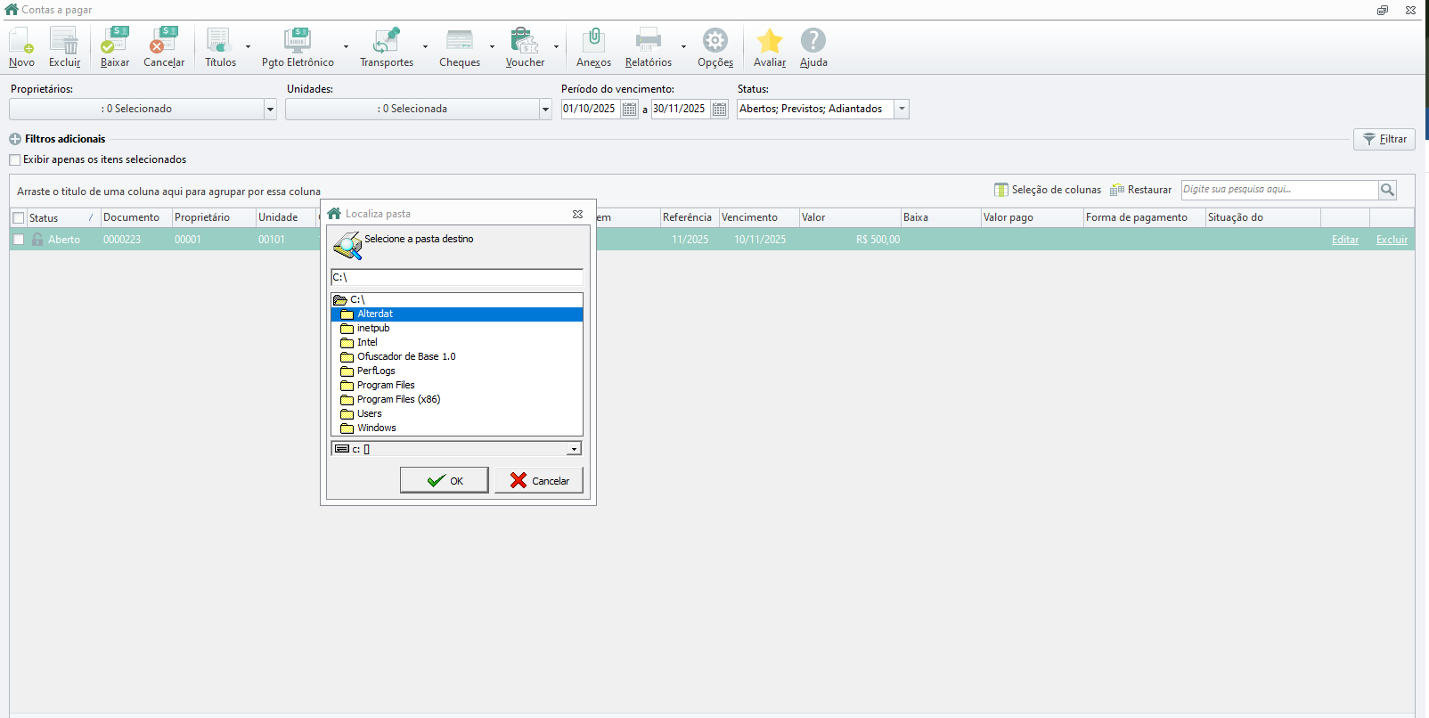 O sistema irá perguntar onde você deseja salvar o arquivo, selecione uma pasta de destino no seu computador. Escolha um local fácil de acessar. Em seguida, acesse o Internet Banking do Itaú e utilize a função de Transmissão de Arquivos / Remessa para enviar o arquivo gerado e agendar o pagamento.