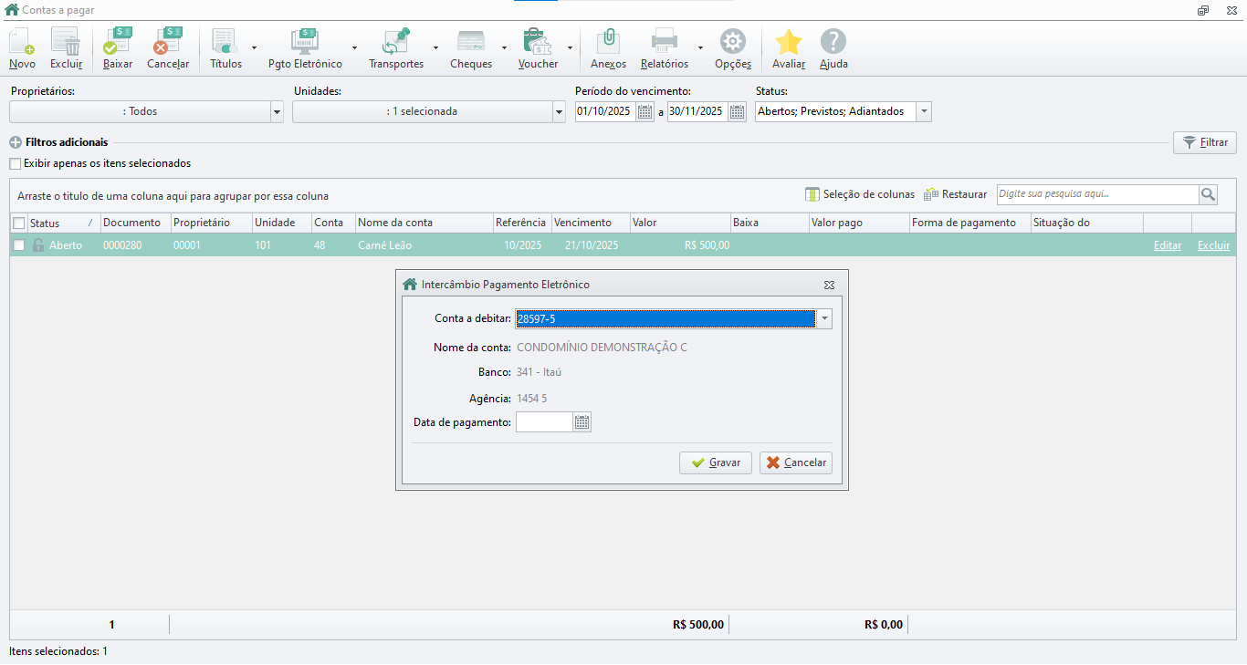 Filtre as contas para que apareça a conta referente ao Carnê-Leão.