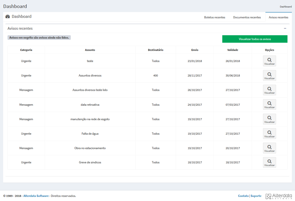Centro de Aprendizagem Locação UP Locação Up Home Guia do Locatário Dashboard (Locatário) Na opção Dashboard é possível ter acesso a um quadro contendo os avisos, documentos e boletos recentes. Guia do Locatário Quadro de Avisos (Locatário)