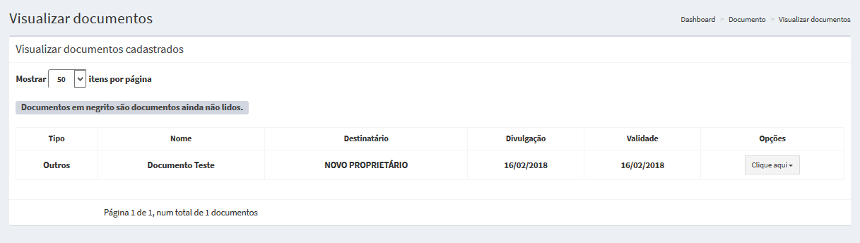 Por meio da opção Documentos é possível visualizar os documentos enviados para o proprietário pela administradora.