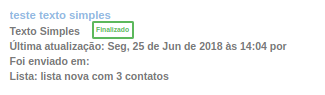 Após clicar no botao enviar, o email será disparado. Vamos retornar a tela da listagem de campanhas que mostrará as informações da campanha finalizada.