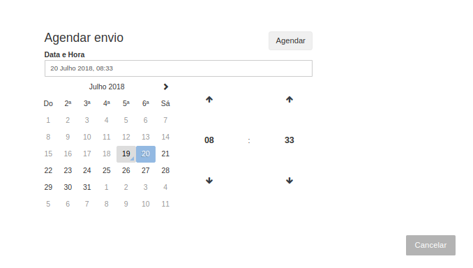 Após escolher a data para o envio basta clicar em 'Agendar'. O sistema finalizará a edição da campanha e passará a mostrar a campanha como agendada. Na data escolhida o Mitte Pro de forma automatica fará o envio.