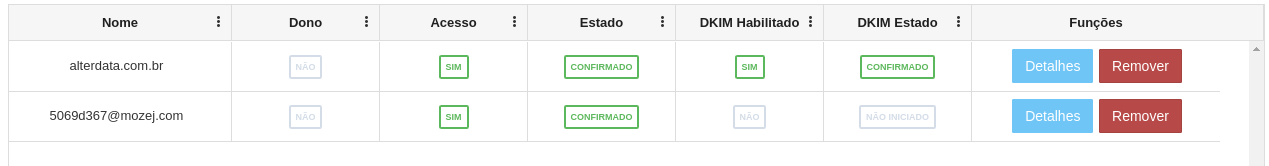 Após a permissão ser concedida, o domínio vai aparecer na aba domínio do usuário solicitante. Repare que a opção "Dono" está como "NÃO", nós não somos dono do domínio apenas temos permissão de utiliza-lo.