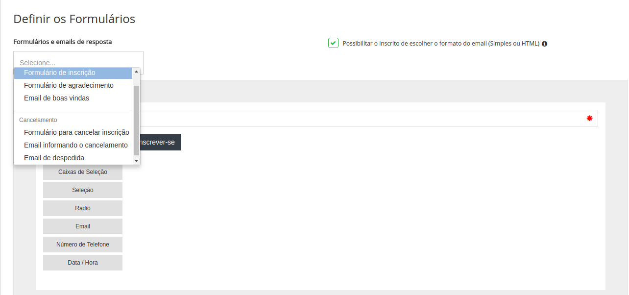 Permite a criação e personalização dos formulários a ser utilizados junto com a Lista. Formulários como inscrições, cancelamento da assinatura, emails de resposta, formulários de boas vindas dentre outros, poderá ser personalizado poderá ser personalizados para ficar com a cara da sua empresa.