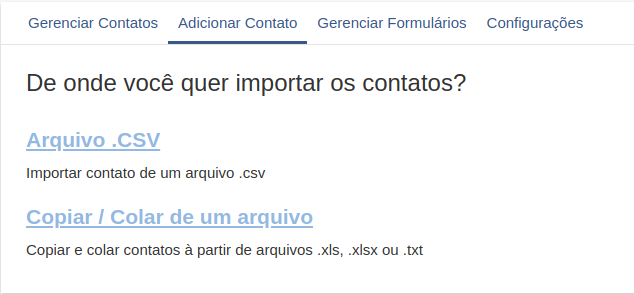 Dessa forma, podemos copiar o contéudo do arquivo com os contatos e importar no sistema.