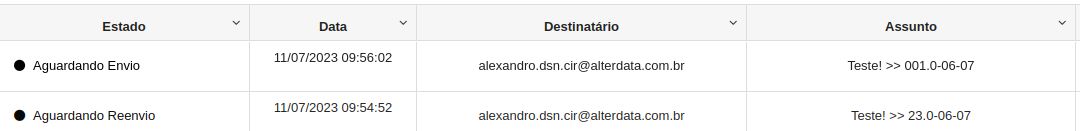 - Mensagens que estiverem que estiverem com status 'Aguardando Envio' ou 'Aguardando Reenvio' a mas de 60 minutos já serão candidatas a esse reenvio, segue abaixo uma imagem das mesagens nessas condições