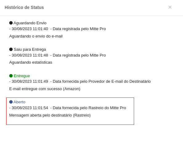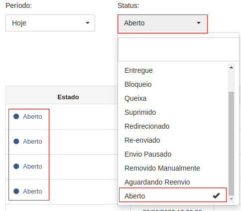 - Foi criado um status novo, Aberto, assim podemos ver de maneira clara e rápida que a mensagem foi aberta pelo destinatário e podemos fazer filtros por esse status;