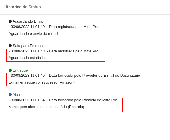 Melhorias na visualização dos Status na ABA Atividade e Histórico de Envios
