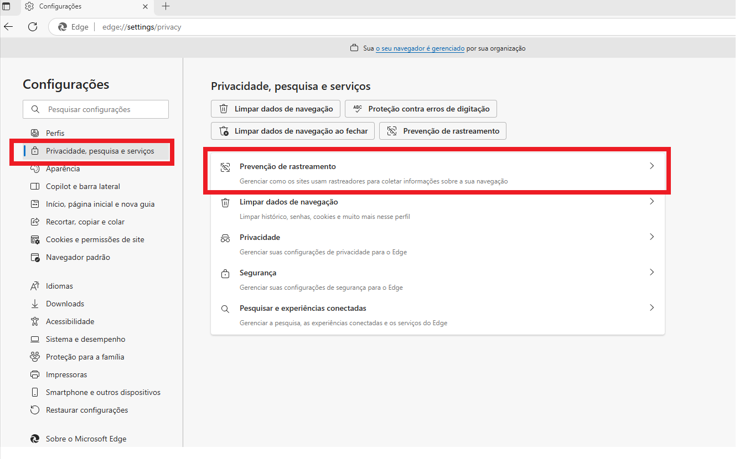- Localize a seção Prevenção de rastreamento.
