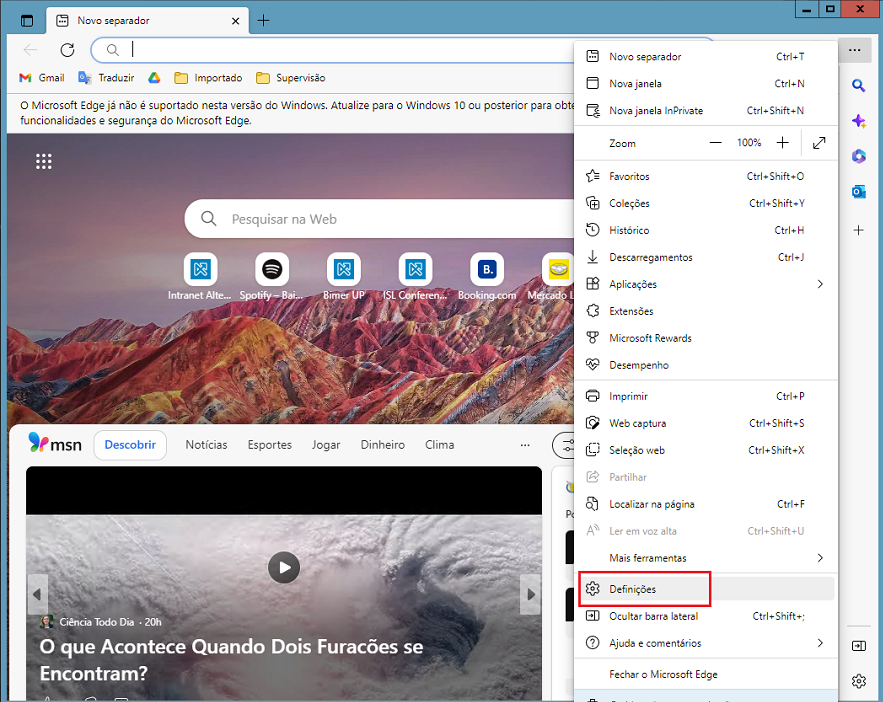 - Acesse as Configurações ou Definições do Microsoft Edge.