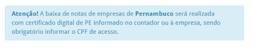 - Pernambuco importamos com o certificado da própria empresa ou do contador;