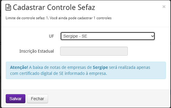 - Após configurar o certificado na empresa, será necessário cadastrar o Controle Sefaz.
