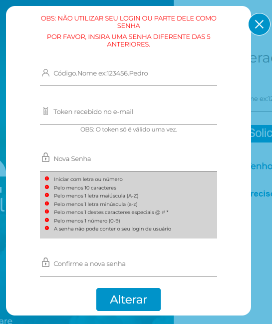 Senha atualizada com sucesso! Retorne para a página inicial do Portal Nuvem e realize o login com a senha nova.