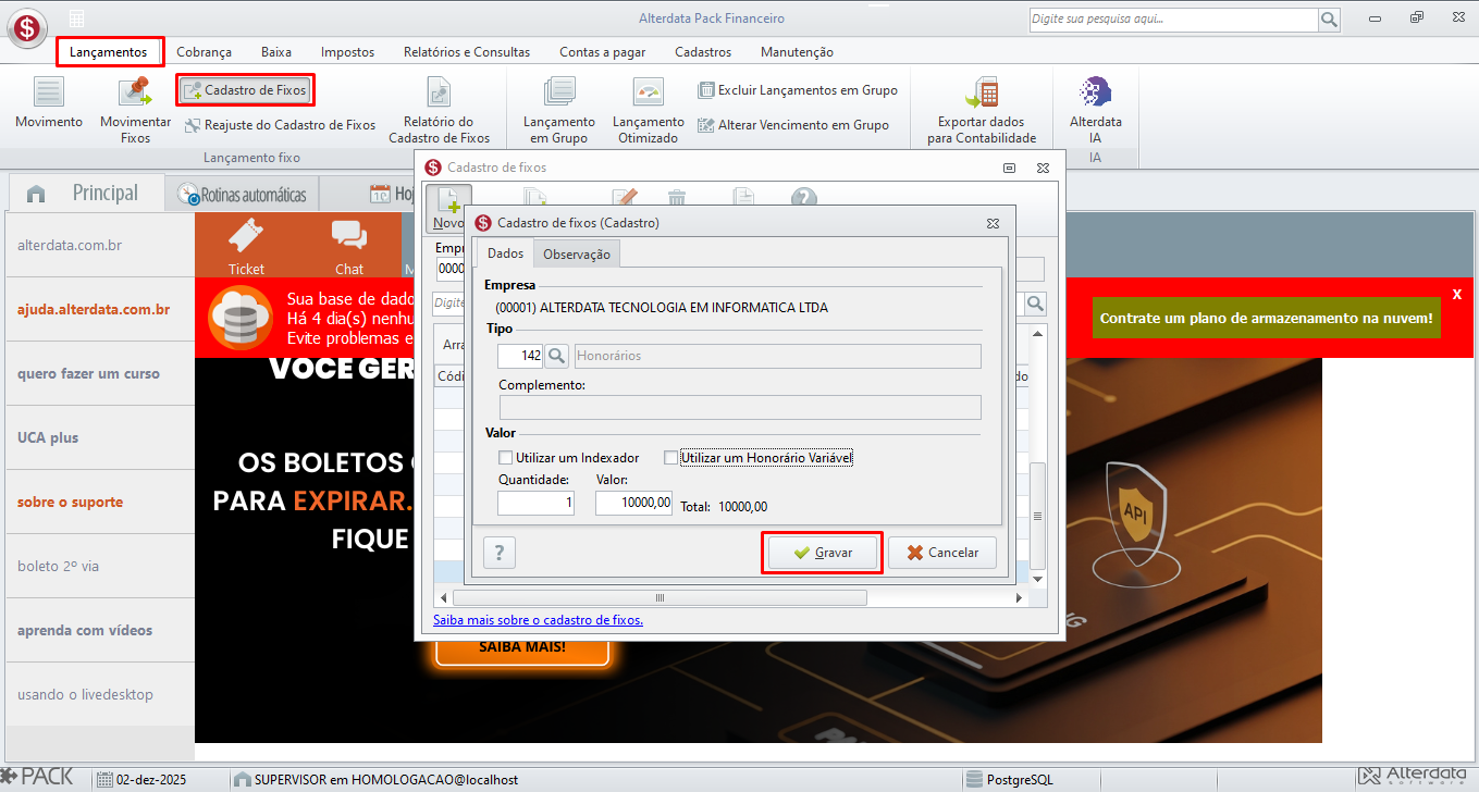 Como realizar o Cadastro de Fixos de honorários