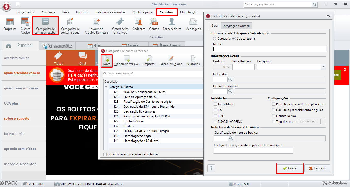 Como cadastrar a Categoria a Receber de honorários