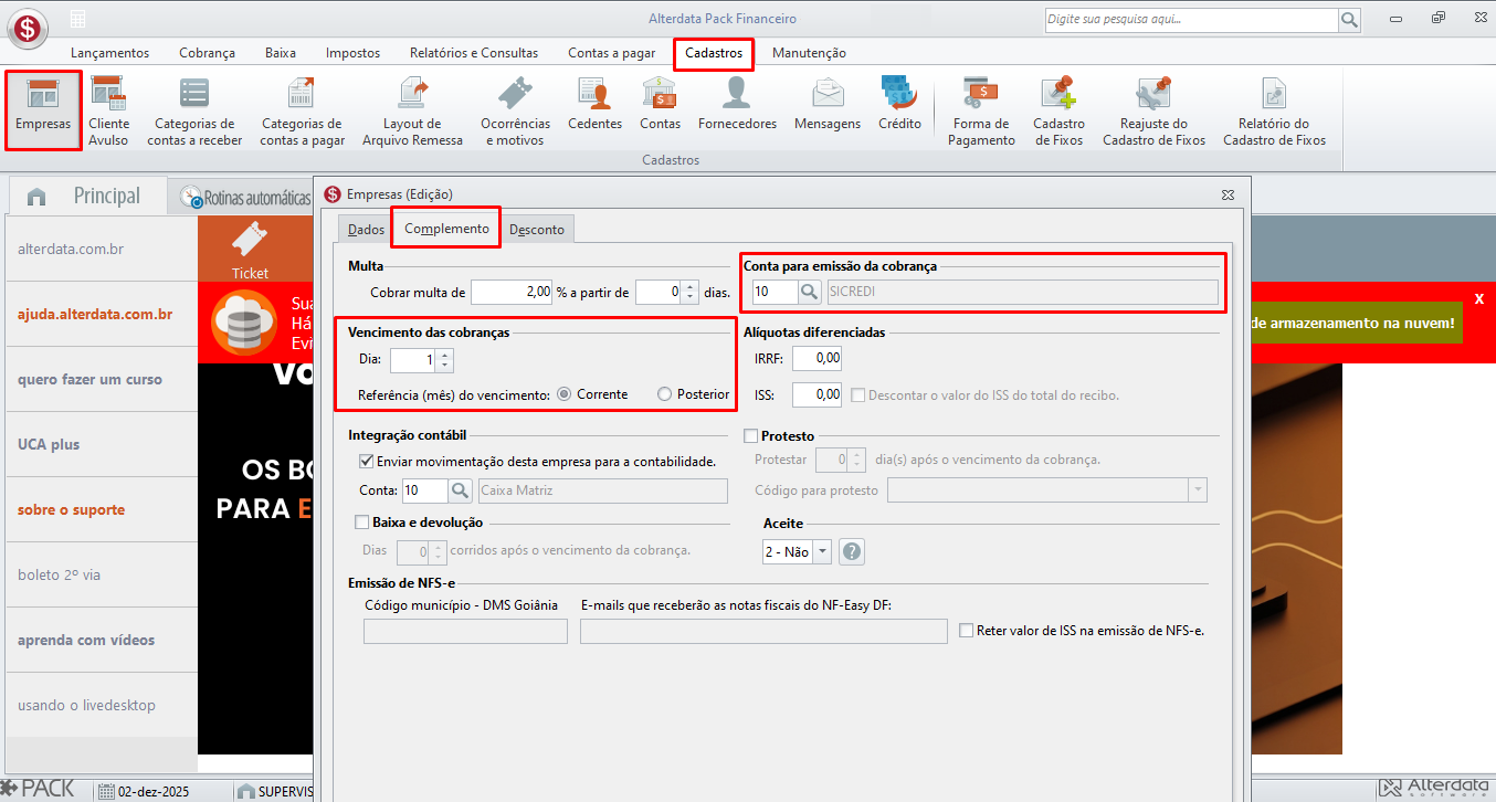 - Seleciona a empresa desejada e depois clique na aba Complemento;