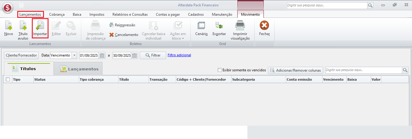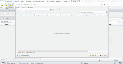 - Execute a importação e a mesma logo aparecerá no Grid de movimentos.