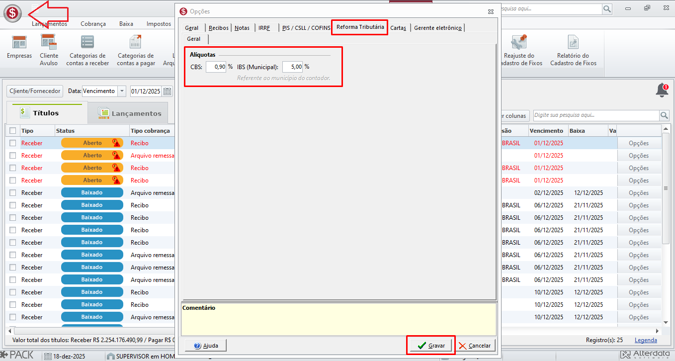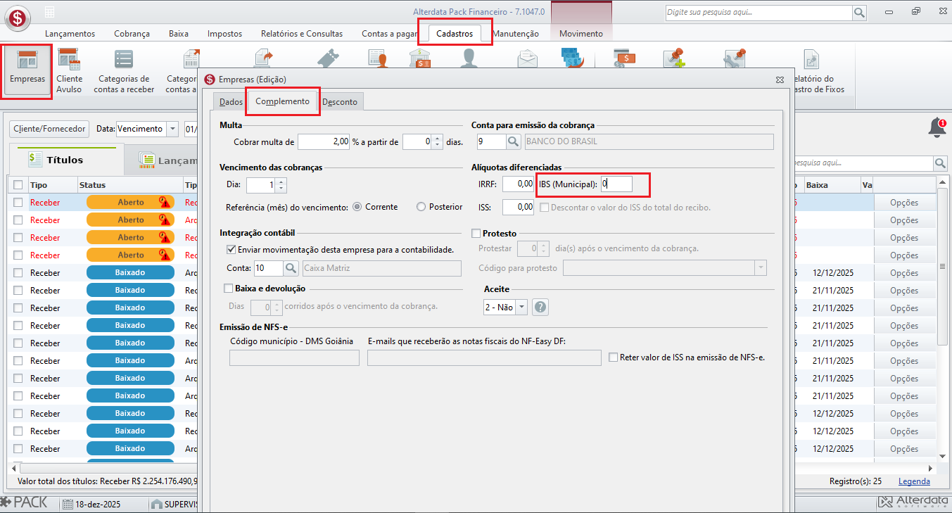 Para informar o CBS da empresa e o IBS do município do Contador, siga o passo a passo;