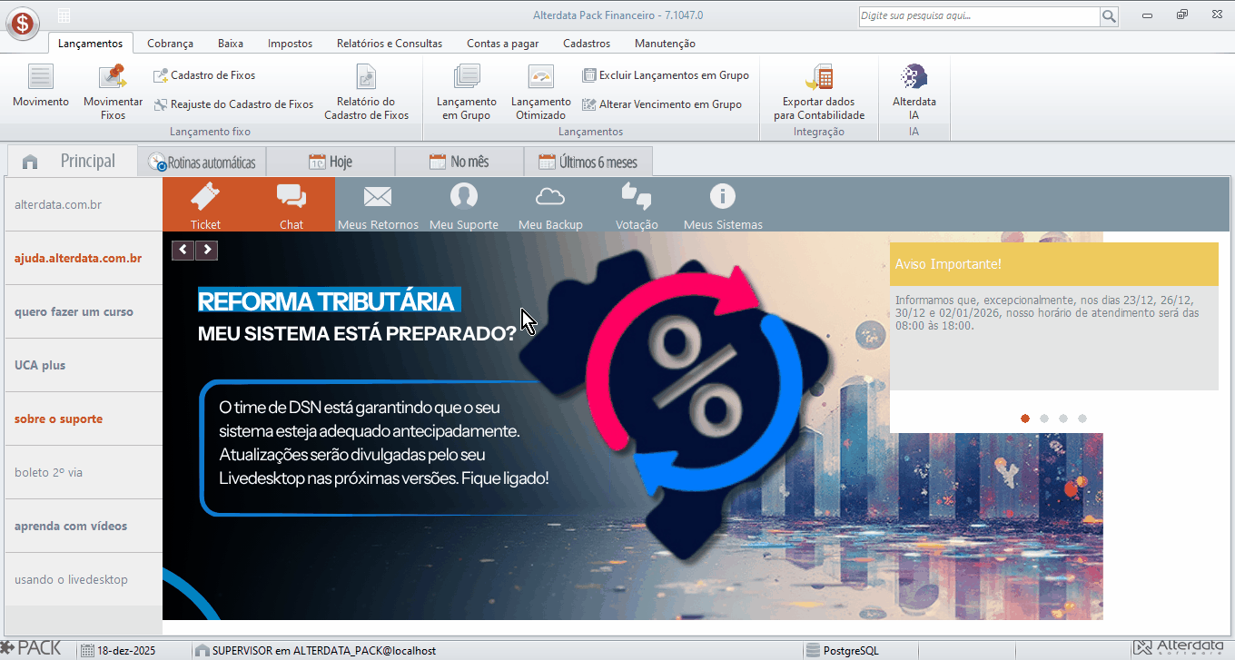 - Clique na aba Reforma Tributária e na aba Geral;