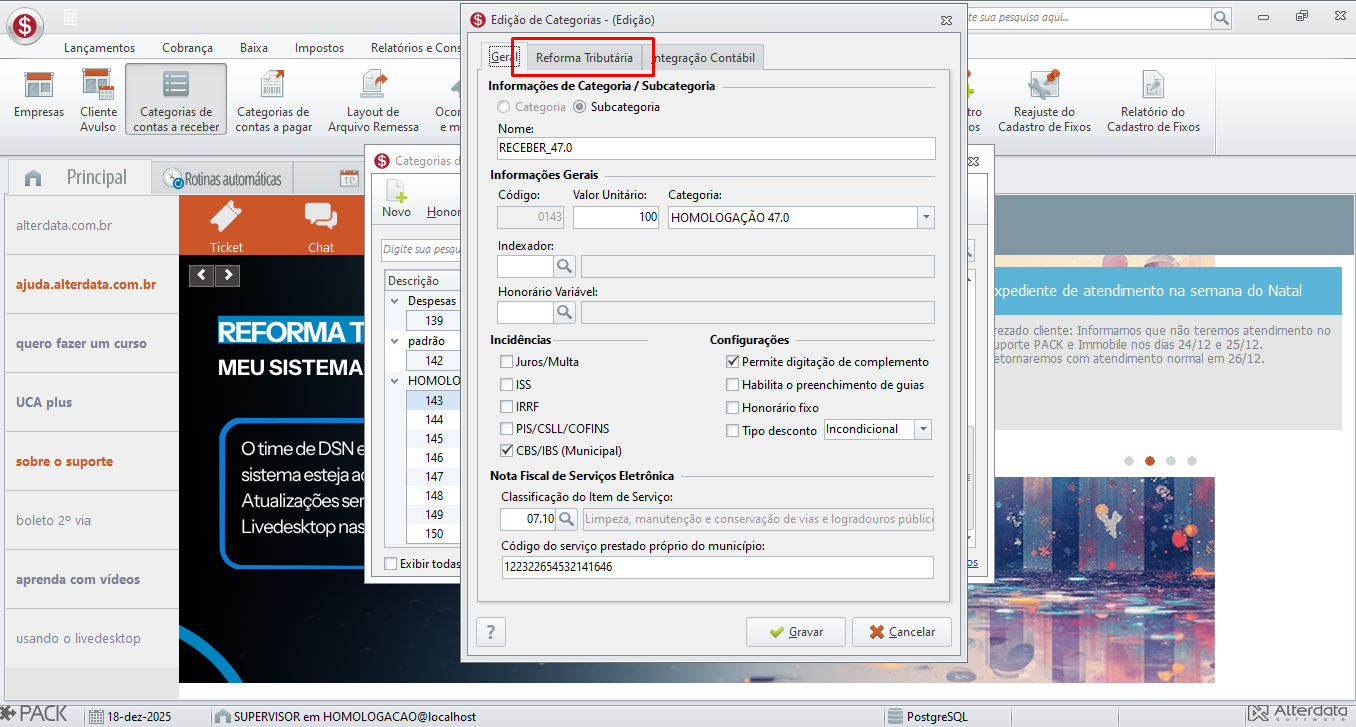 Como cadastrar Categorias a Receber com CBS/IBS (Municipal)
