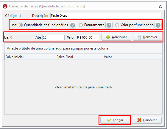 Agora, no Pack Financeiro, está disponível a opção de realizar o Cálculo de honorários de forma variável, possibilitando o lançamento de valores diferentes para: quantidade de funcionários, Faturamento e Fixo por funcionário.