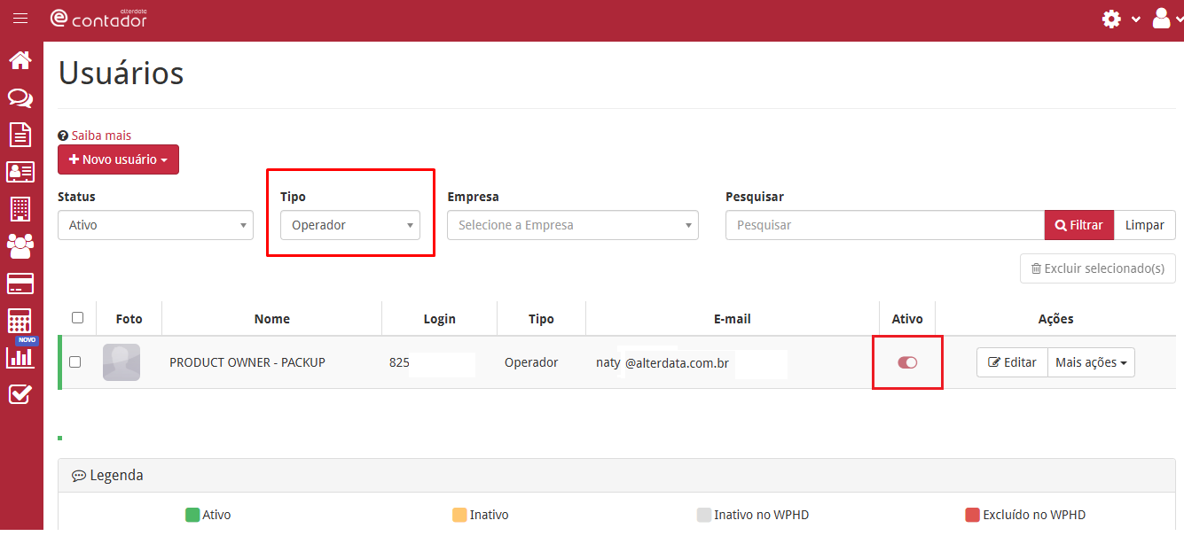 Após cadastrar o operador no PHD, é preciso ativá-lo no eContador Web, para isso siga o passo a passo: