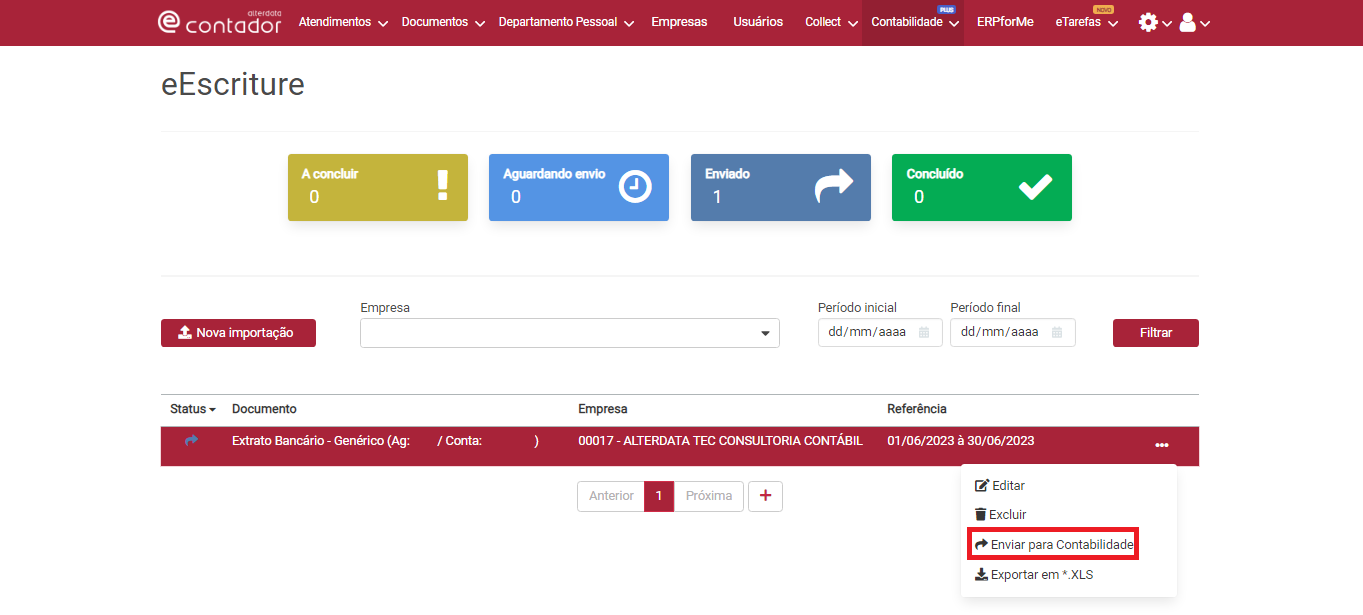 Clique em Enviar para Contabilidade.