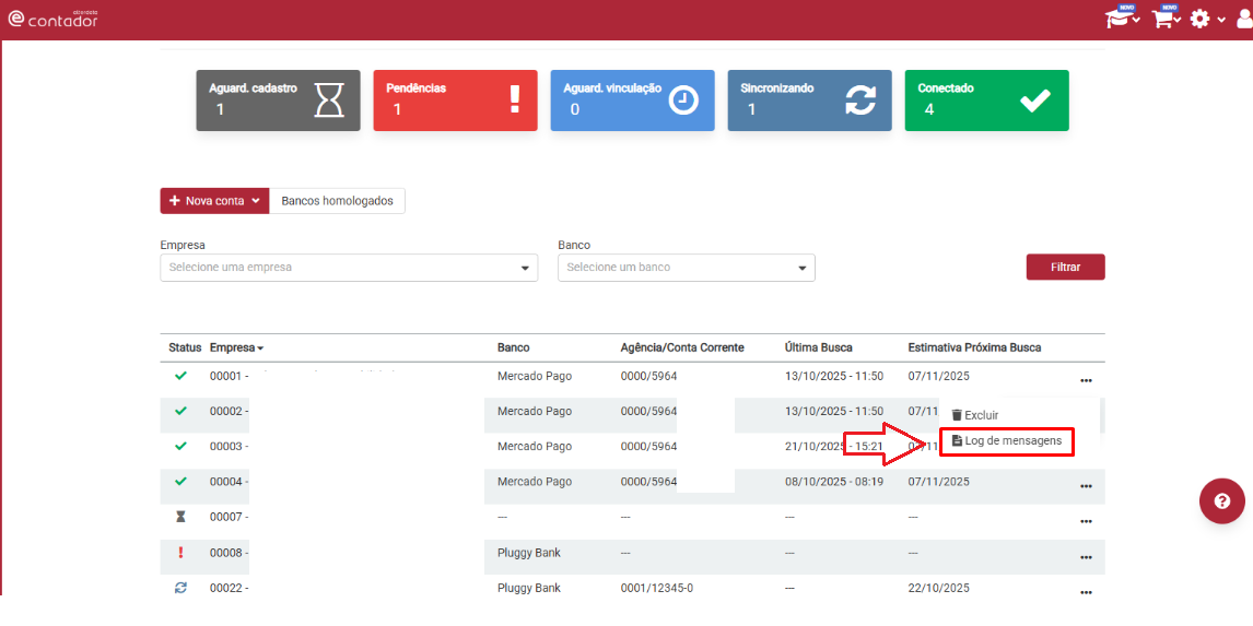 Para verificar o Status de sincronização das contas, siga o passo a passo:
