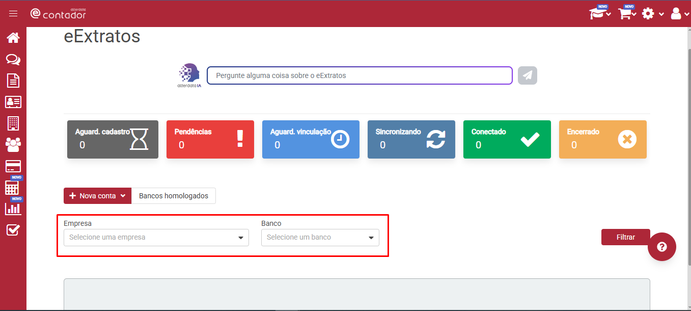 3. Informe a Empresa e o Banco e depois clique em Filtrar.