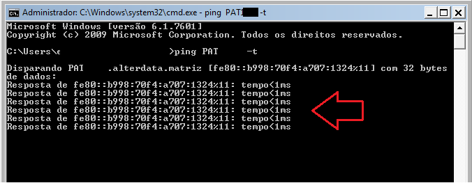 Logo abaixo, será mostrada a resposta da comunicação entre as máquinas na rede, caso esteja com oscilação e tempos muito altos, indica um problema na rede e deve ser visto com o T.I da empresa.