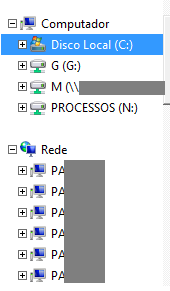 Acessar o C: da máquina, no menu lateral clicar em “Rede”. Todas as máquinas que fazem parte da rede serão listadas, clique em alguma (ou na máquina específica).Tente criar uma pasta nesta máquina que você selecionou, caso não consiga, existe um bloqueio, e deve ser verificado com o T.I