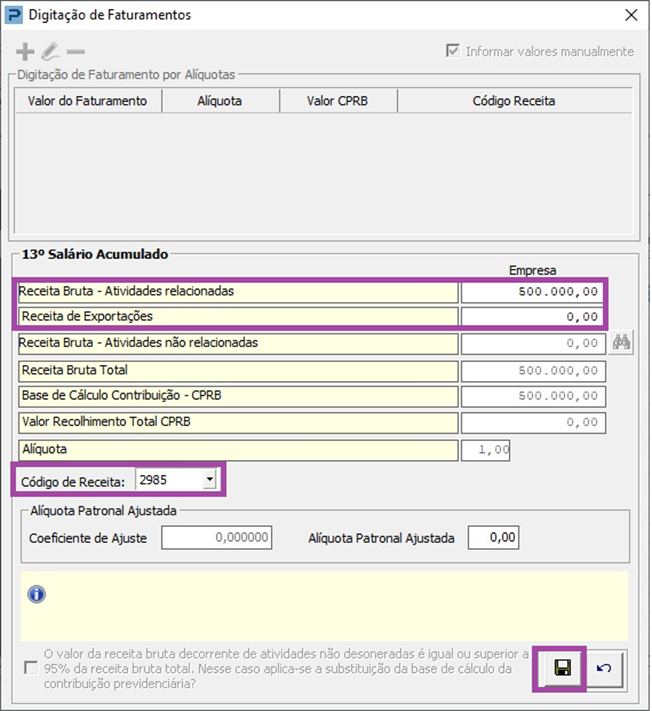 3- Informe o valor do faturamento acumulado do exercício correspondente ao 13º Salário que está sendo processado: