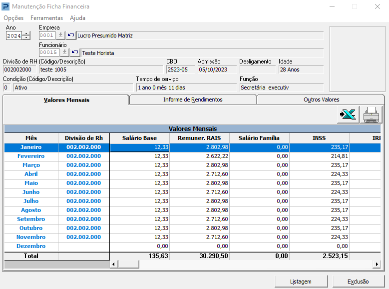 2- As informações devem estar devidamente acumuladas na Manutenção da Ficha Financeira do Funcionário, mês a mês.