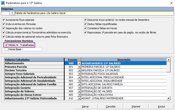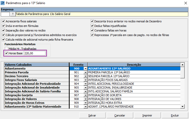 Parâmetros para Processamento do 13º Salário