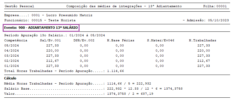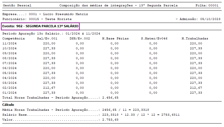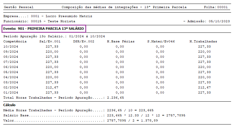 Lembrando que neste caso, o Relatório de Médias de 13º Salário não será emitido, exatamente por não se tratar de cálculo por médias.